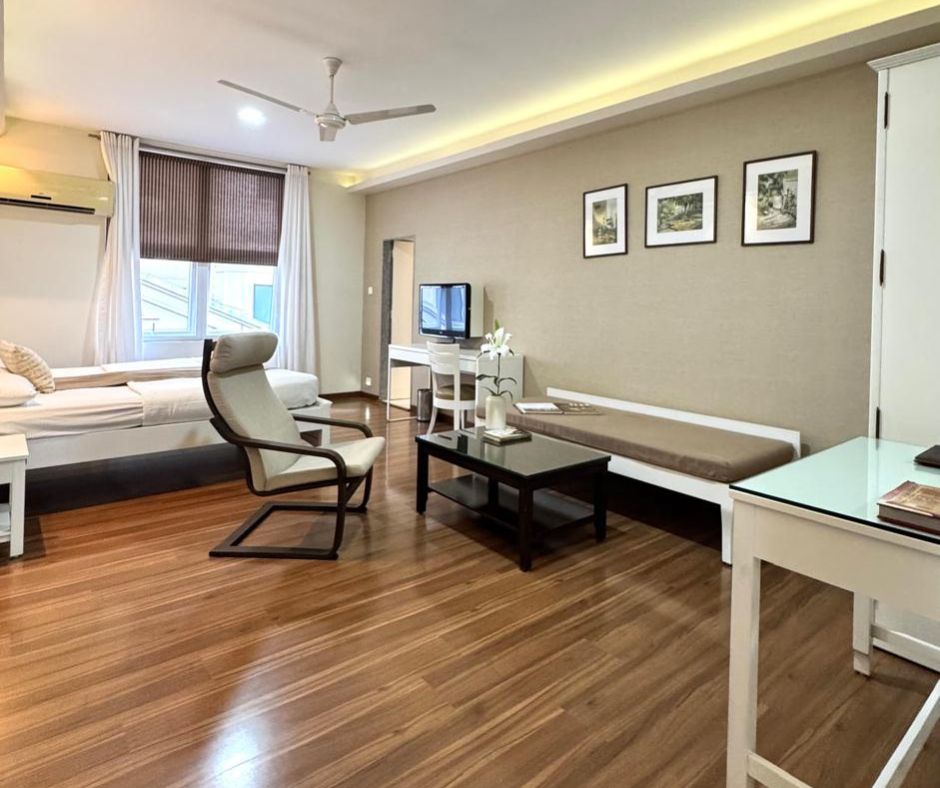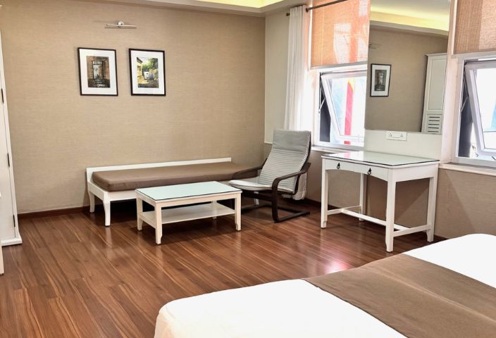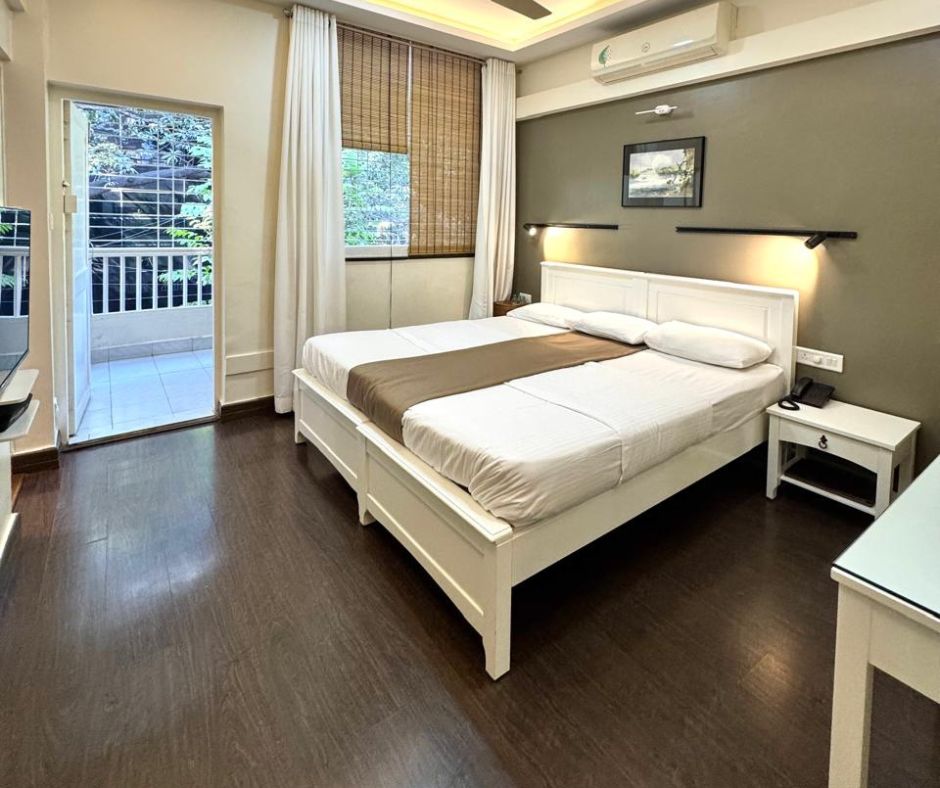 A boutique legacy since 1970. Unwind in our spacious, sunlit rooms featuring private balconies, just steps away from the Ramamani Iyengar Yoga Institute.